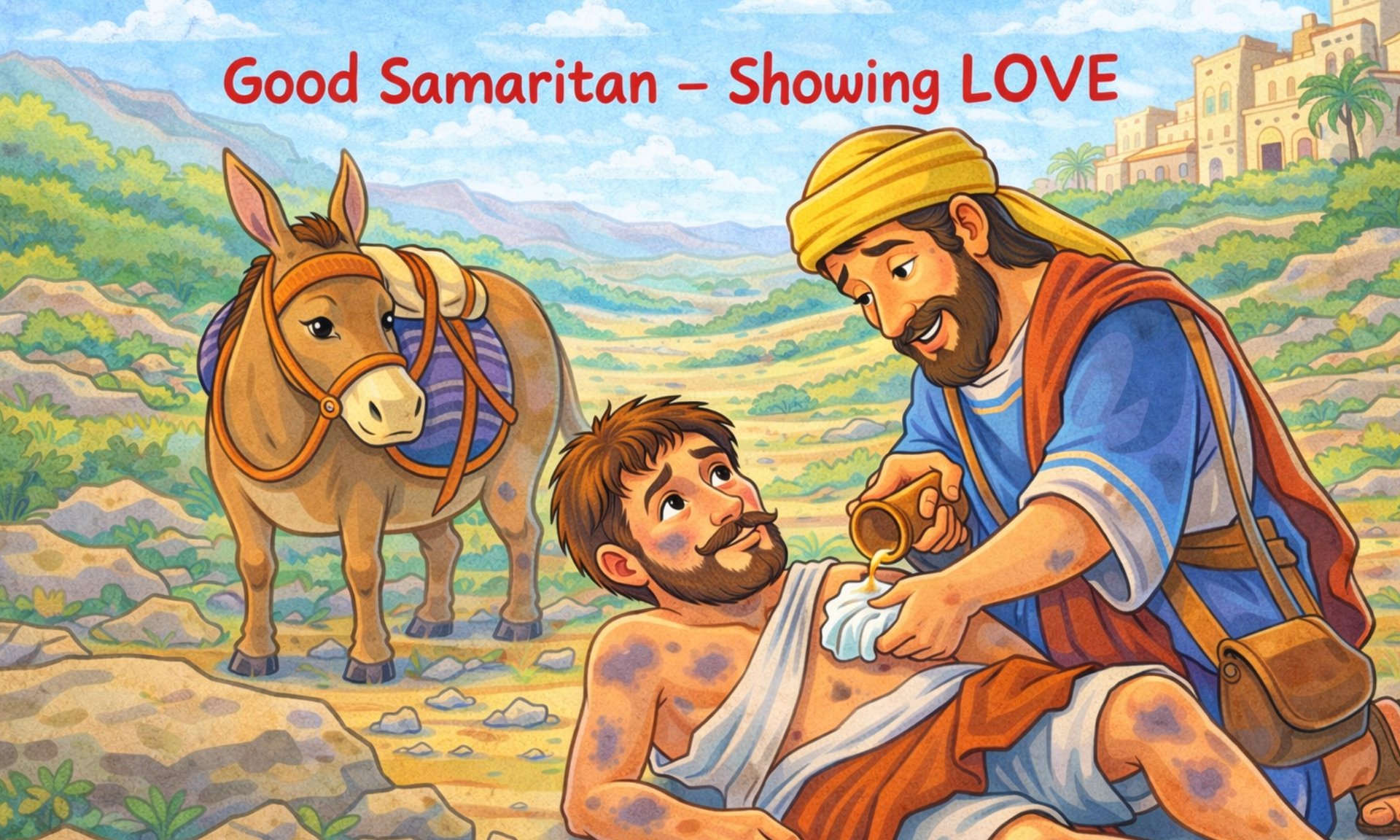 This Sunday School lesson for kids teaches children how to love others by following Jesus’ example. In this engaging Bible lesson for children, kids will learn that loving others means caring, helping, and being kind—even when it is not easy. Using the Bible story The Good Samaritan (Luke 10:30–37), this Christian lesson for kids shows how Jesus teaches us to love people through our actions, not just our words.