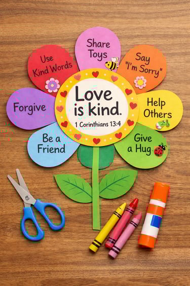 This Christian lesson for kids includes everything teachers need: a meaningful Bible story, guided discussion questions, a hands-on kindness craft, a simple memory verse with motions, and heartfelt prayer moments. Children will talk about everyday situations at school and home, practice using kind words, and learn how to forgive when feelings are hurt.