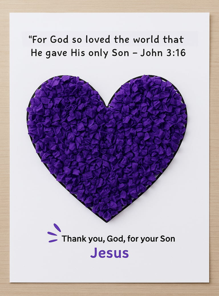 This creates a beautiful, bright purple heart to show gratitude for Jesus.